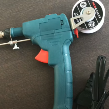 This automatic soldering gun is great. Make sure the solder unwinds the right way. You might need a screwdriver to open the cover. Once set up, it's a game changer for DIY and repairs.