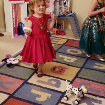 My granddaughter received this as a birthday gift, and according to her mom, she's absolutely in love with it. She follows it everywhere and talks to it constantly. It's a great, low-maintenance alternative to a real dog and provides her with endless joy and companionship