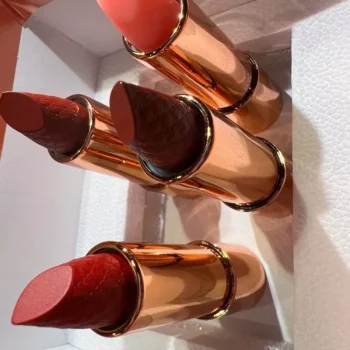 These lipsticks are incredible! They have a beautiful matte finish but are still hydrating. The chain bag is a fun and unique way to carry them around. I've received so many compliments on the colors and the bag itself.
