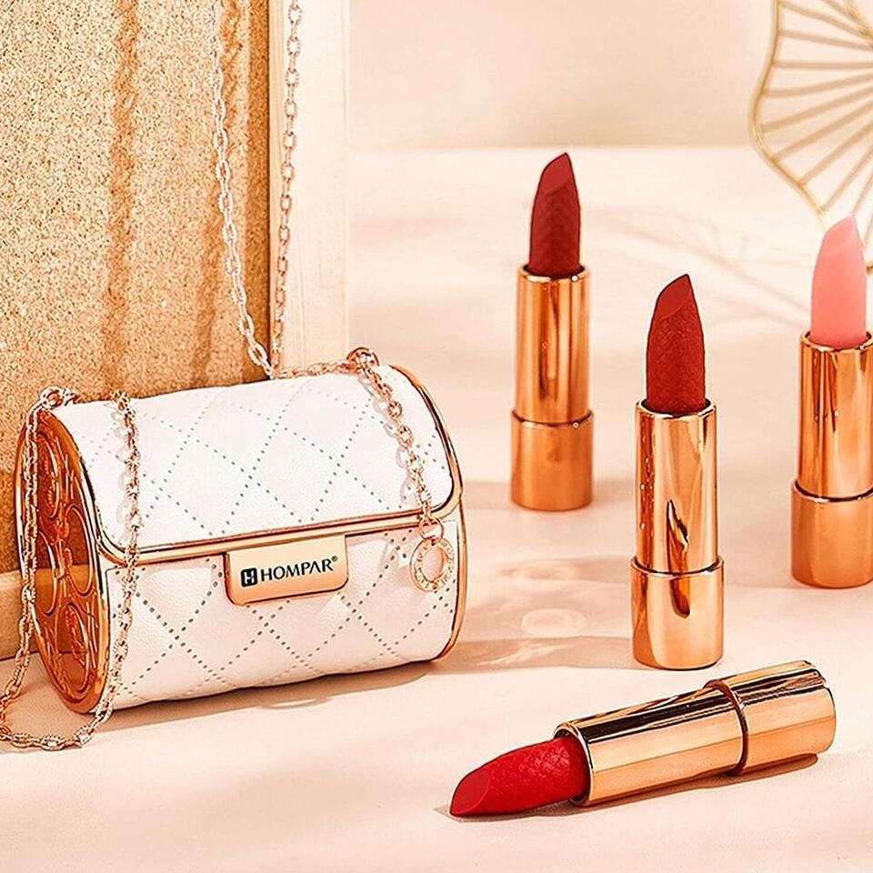 The lipsticks apply smoothly and the colors are perfect for any occasion. The chain bag is both stylish and convenient, making it easy to switch colors throughout the day.