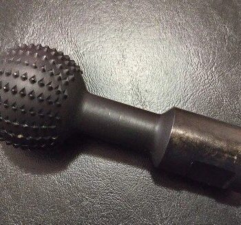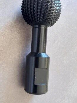 This is excellent for working even with hardwoods, but it's important to put the washer on the grinder before attaching the gouge to avoid excessive vibration.