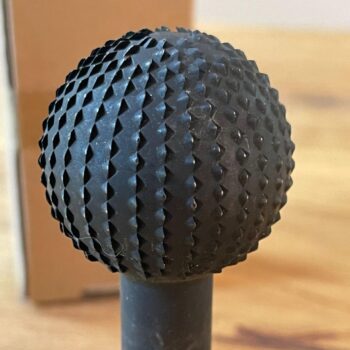 This heavy and sharp tool processes trees quickly, but it has a drawback: a strong deviation of 7mm from the axis. It's unusable on a small grinder without rpm adjustment but works well on a larger grinder set to a minimum speed.